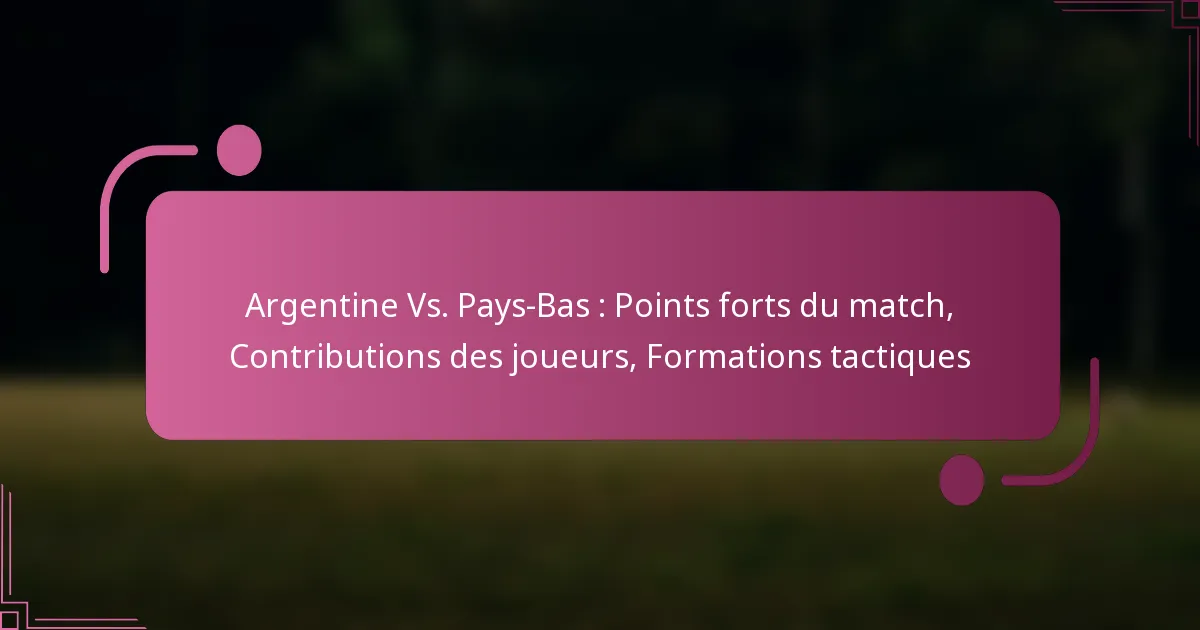 Le match entre l’Argentine et les Pays-Bas a été marqué par une compétition intense, des moments décisifs et des contributions significatives des joueurs. Les moments clés incluent le premier but de l’Argentine, l’égalisation des Pays-Bas et plusieurs décisions controversées de l’arbitre qui ont influencé le résultat du match.
