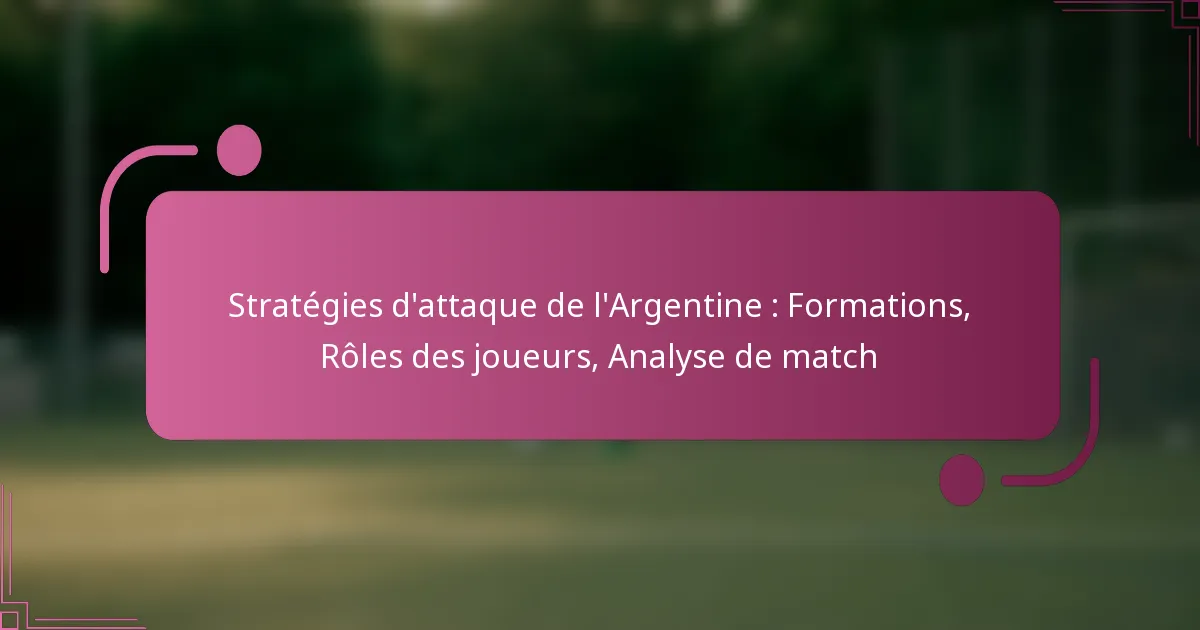 Les stratégies offensives de l’Argentine se caractérisent par l’utilisation de formations comme le 4-3-3 et le 4-2-3-1, qui offrent à l’équipe la flexibilité nécessaire pour s’adapter à diverses situations de match. Les rôles distincts de chaque joueur sont essentiels à ces stratégies, car ils contribuent à la création d’opportunités de but et au maintien de la pression offensive. Les récents matchs contre des équipes de haut niveau comme le Brésil et la France illustrent l’approche dynamique de l’Argentine, mettant en avant leur capacité à exploiter les faiblesses des adversaires tout en maximisant leur propre potentiel de but.