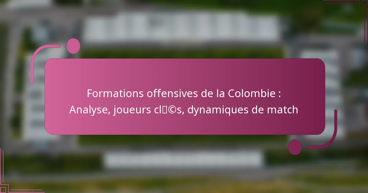 Les formations offensives de la Colombie, principalement le 4-2-3-1, le 4-3-3 et le 3-5-2, jouent un rôle crucial dans la dynamique de leurs matchs et leur performance globale. L’efficacité de ces stratégies dépend des contributions de joueurs clés, y compris des attaquants habiles et des milieux créatifs, qui adaptent leur jeu en fonction de facteurs en temps réel tels que les scores et les tactiques des adversaires.