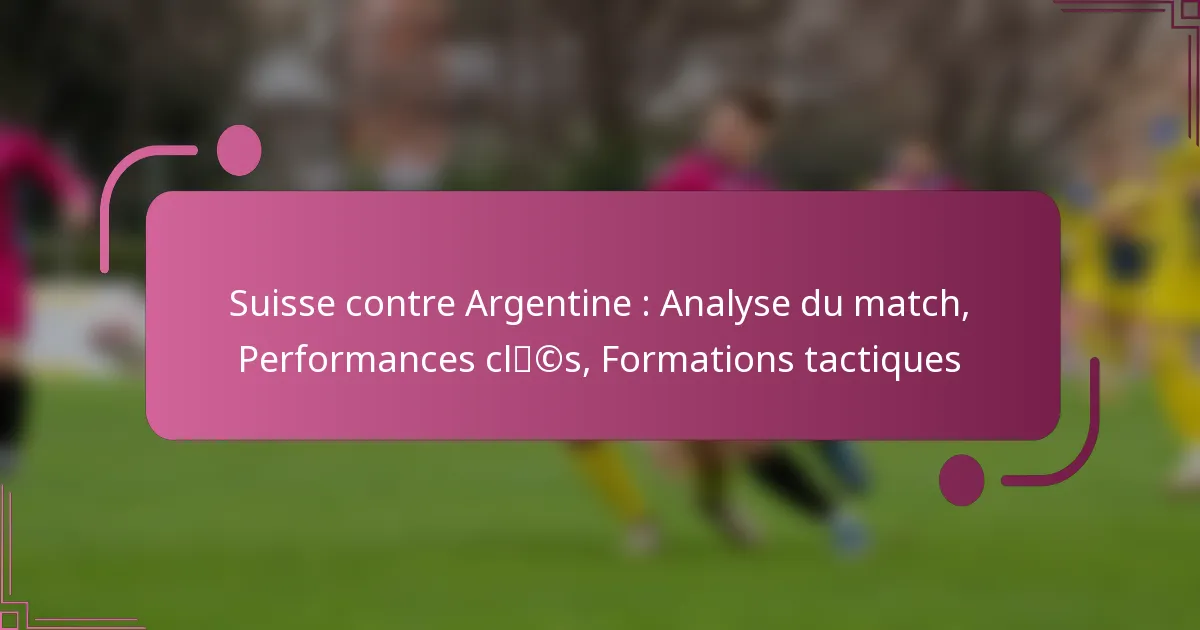 Suisse contre Argentine : Analyse du match, Performances clés, Formations tactiques